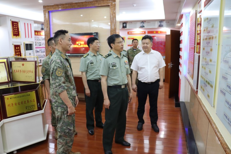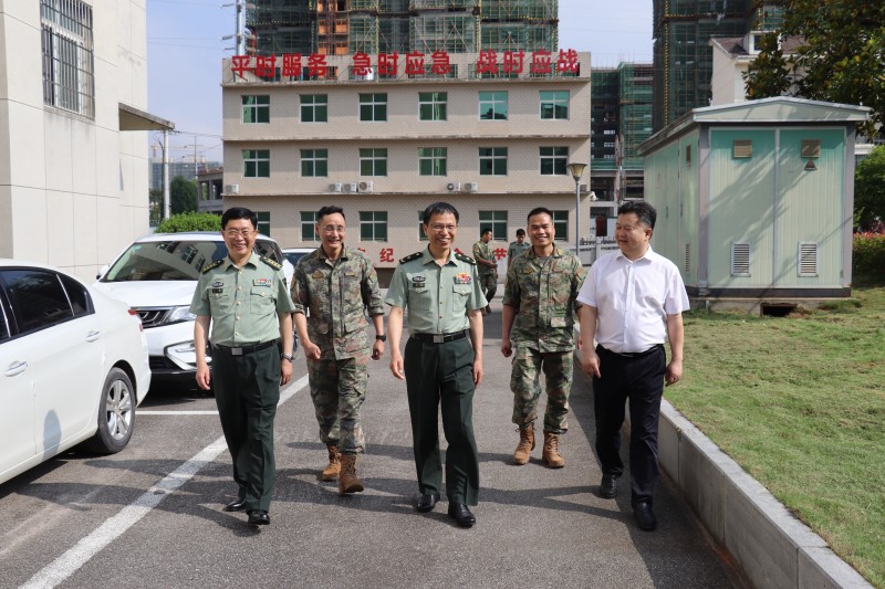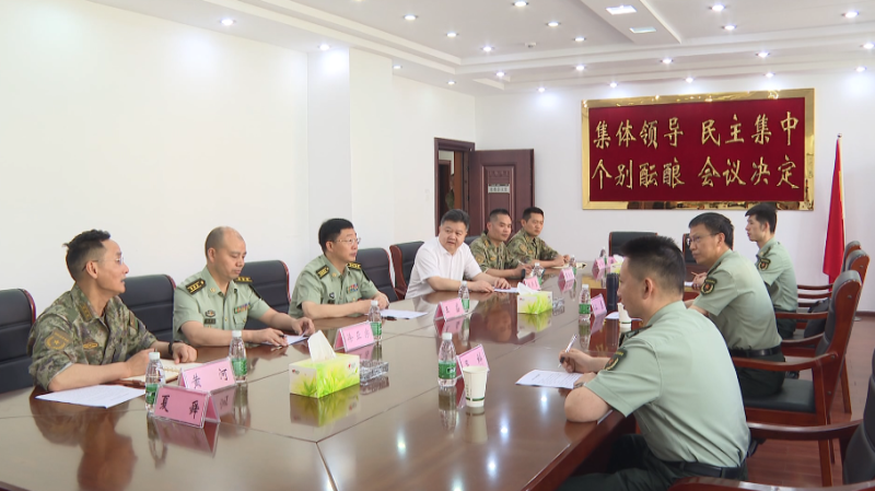 初夏时节,草木葱茏,万物竞秀。江勇一行来到县人武部,看望慰问了县人武部官兵,与他们一一握手,亲切交谈。随后,江勇实地考查了营院环境、战备器材库、值班室、荣誉室等,认真听取了县人武部工作情况汇报,详细了解了通山县辖区概况和近年来党管武装、国防动员、基层建设等工作开展情况以及2023年工作筹划。