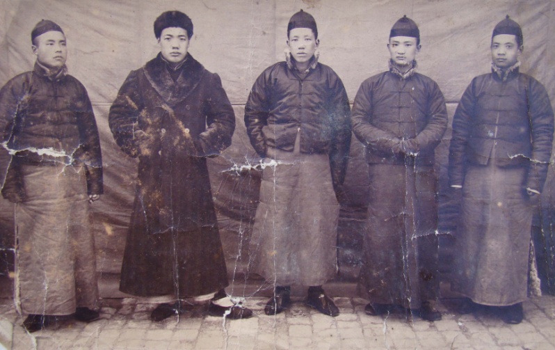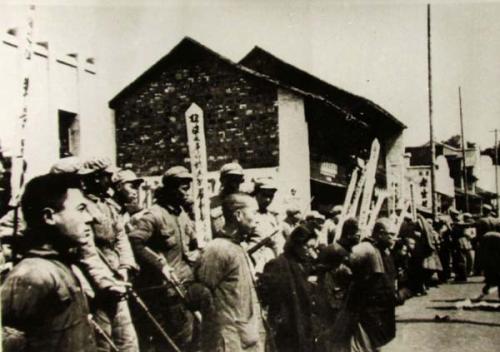 通山反动会道门头目汪洪(左三)、丁海龙(左四)和会徒合影照